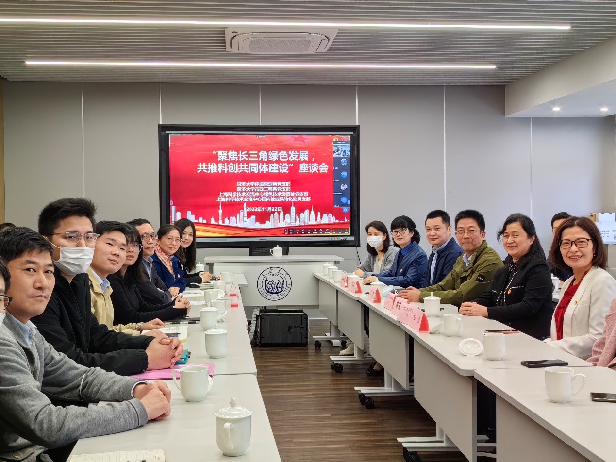 为深入学习贯彻党的二十大精神,进一步增强党建工作和业务工作相融互促,11月22日,bat365官网登录入口环境管理所党支部、市政工程系党支部和上海科学技术交流中心绿色技术发展处党支部、国内处成果转化处党支部联合开展“聚焦长三角绿色发展,共推科创共同体建设”支部共建主题党日活动。本次主题党日活动采取现场参观和线上线下座谈交流相结合的方式举行。长三角可持续发展研究院副院长柳剑雄、长三角一体化示范区执委会生态规建部副部长杨文敏、上海科学技术交流中心主任王震以及共建支部党员师生四十余人参加了交流。
