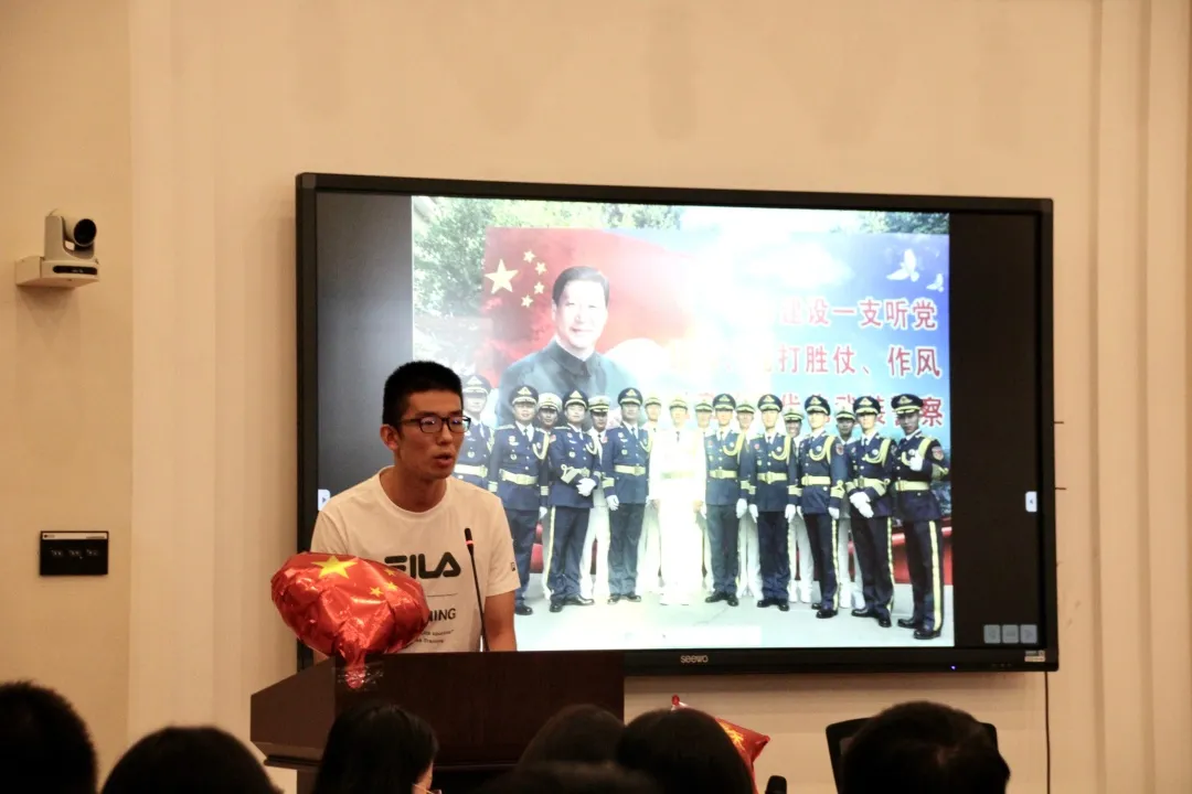 退伍大学生、bat365官网登录入口19级本科生季文杰向大家分享了自己的入伍经历和参与国庆70周年阅兵的难忘记忆。季文杰用自己的亲身经历和体会为大家上了一堂生动的思想政治课,通过一段热情澎湃的演讲和一张张生动的照片,一个不断超越自我、百炼成钢的军人形象生动的展现在大家面前。季文杰还给大家分享了一段视频,军人们努力通过最严苛的训练并最终成为国庆阅兵方阵中一员的精彩故事深深打动并激励着大家。季文杰的讲述和分享让与会人员得以更深入地去了解和感悟一个军人的生活,也让大家更加接近那群替我们“负重前行”的最可爱的人,更让大家明白了如今和平稳定的生活需要多少人的不断坚守和付出,极大地激发了大家的爱国情怀。