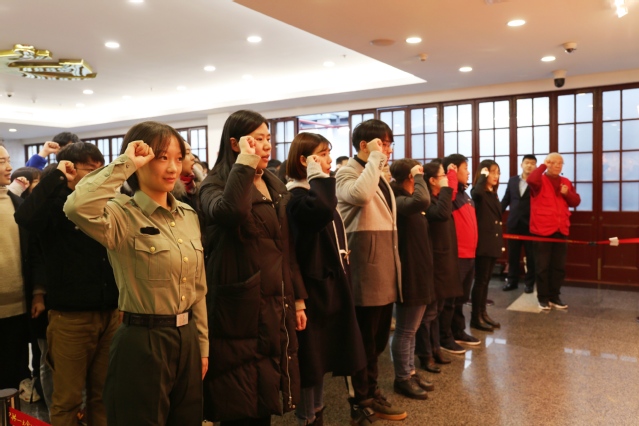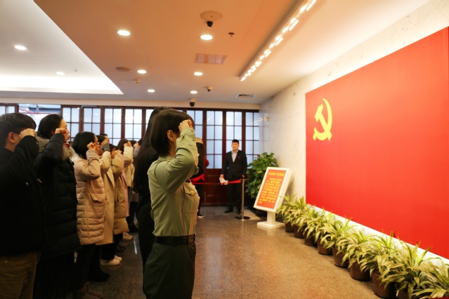 预备党员宣誓环节在上海市兴业路76号的中共一大会址纪念馆内举行,全体参与人员在重温党史中对党立下诚挚的誓言。面对鲜红的党旗,每个人怀着激动的心情,紧握右拳,铿锵有力地宣读入党誓词。每一句誓言都掷地有声,每一声宣誓都荡气回肠。