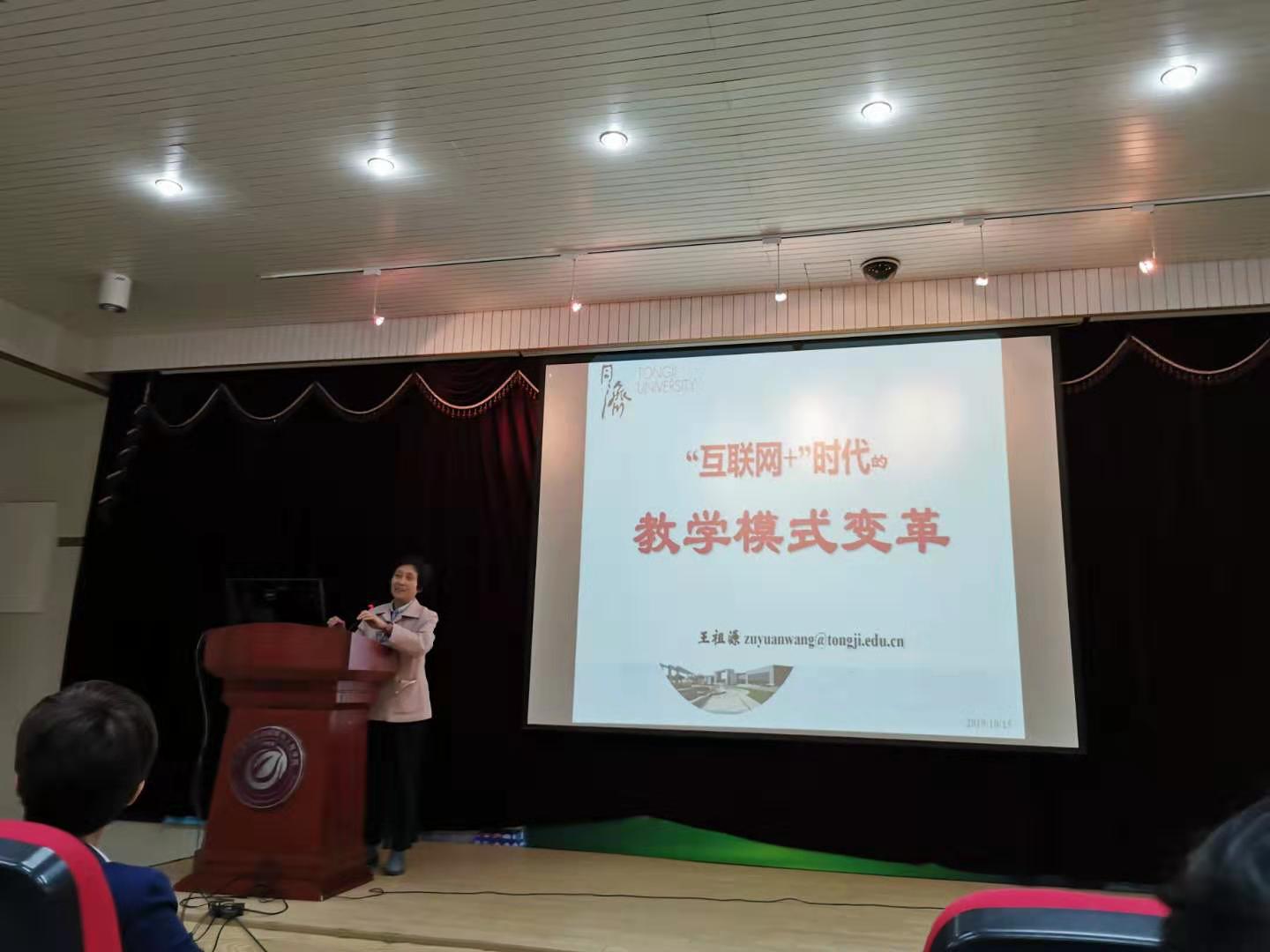 王祖源老师首先从在线课程的起源以及相关环境发展状况,意义阐述了互联网时代的教学模式的变革。她以早年的电化教学、MOOC、SPOC和翻转课堂的发展沿革到以学生为中心的教学改革历程为主线,介绍了新的时代背景下教学改革的必然性。王祖源还介绍了bat365官网登录入口《大学物理》课程在新工科背景下教学改革的方法措施以及取得的成绩,并以自己授课班级在传统教学和SPOC翻转课堂教学模式下,学生的感触和成绩作为对比,认为通过混合式教学激发学生的探索求知能力是较好的教学方法。主题报告会后,王祖源教授与学院老师进行了深入交流,探讨了在线教学与课堂教学的差异和共同点,并介绍了在线教育的情况。