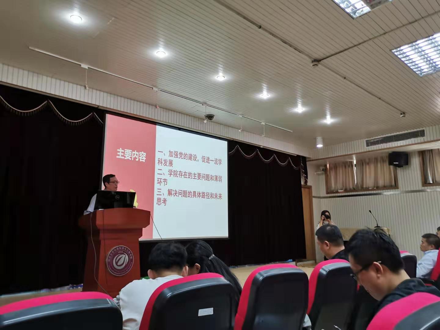 最后,他强调加强学院党建工作具有重要的意义,在充分发挥学院党委领导作用、发挥党支部的战斗堡垒作用、发挥党员的先锋模范作用、履行党风廉政建设以及加强党建文化建设方面的具体实践和思考做了阐述。