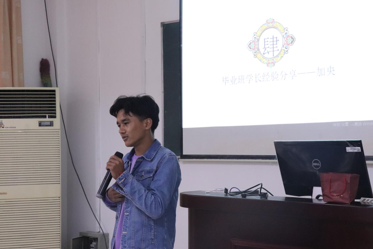 才艺展活动中,不仅有精彩纷呈的歌舞表演,更有来自毕业班优秀少数民族学生加央同学带来的经验分享。在分享中,加央同学讲述了自己大学四年的学习心得,鼓励学弟学妹们积极参加学生活动展现自己、努力学习,并且表示了自己对学院老师关心与帮助的真心感谢。