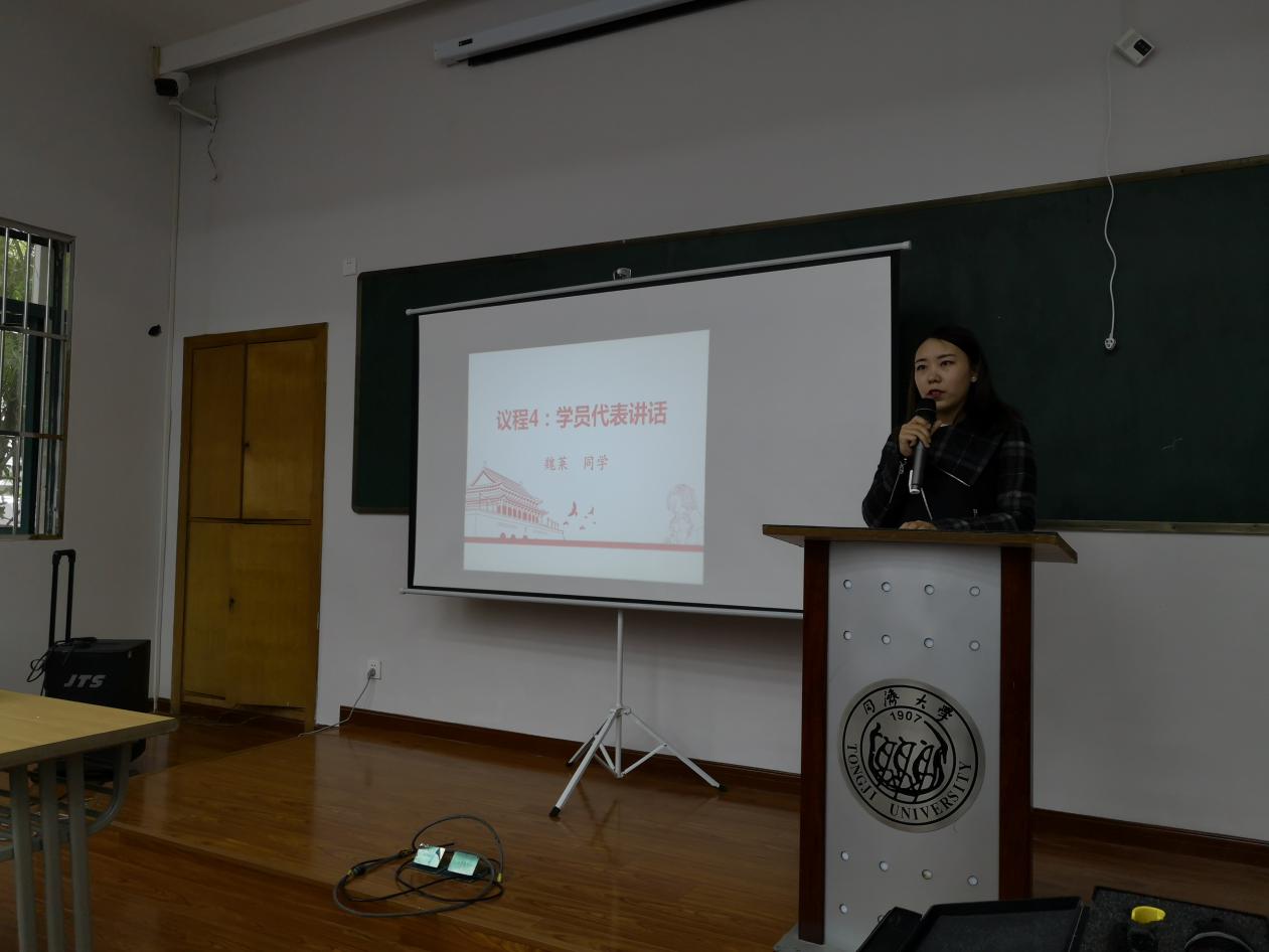 之后,来自bat365官网登录入口的魏莱同学作为学员代表发言,她在发言中阐述了自己对党的认识,也表明了此次参加党校培训的态度和决心,代表所有学员感谢学院党委和学生党组织给所有学员们提供进一步深入了解党、认识党的学习机会,他们定当好好学习,努力成为习近平总书记提出的“有理想、有追求、有担当、有作为、有品质、有修养”的德智体美劳全面发展的当代优秀大学生,做到有所收获、有所成长、有所提高。