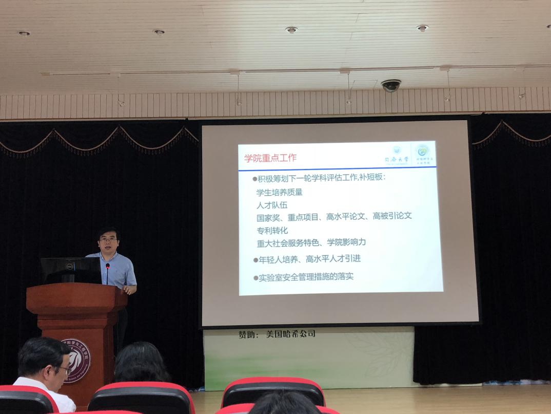 首先,戴晓虎院长针对新学期面临任务和挑战,结合学习习近平新时代中国特色社会主义思想、党的十九大精神,动员全体教师进一步统一思想,围绕学院开展“一流学科”和“高峰高原学科”建设为主线,重视人才培养,立德树人,做好学科建设的统筹和规划工作,认真落实和推进学院后续开展的系列重点方向和重点工作,凝心聚力,扎根中国大地加快建设中国特色世界一流学科。之后,王志伟副院长就近期学院申请成功的国家国际科技合作基地-可持续城市水系统国际联合研究中心、学科建设等事宜,进行了动员和布置。