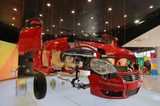 孩子是优秀的学习者,在“玩”的过程中,他们更容易去体会身边的一切,无论是课本上还是课堂之外,他们如同海绵般地吸收着自己感兴趣的知识。当志愿者详细讲解“汽车整车风洞”模型时,孩子们安静认真地聆听着,风洞并非真正意义上洞,是一条大型隧道,里面装有地盘测功机、阳光模拟/雨雪模拟系统、冷却加热系统等设备,可模拟可能遇到的气候和路况条件。用以测试样车的安全性和操作稳定性,以便设计出更加节能、美观的汽车。