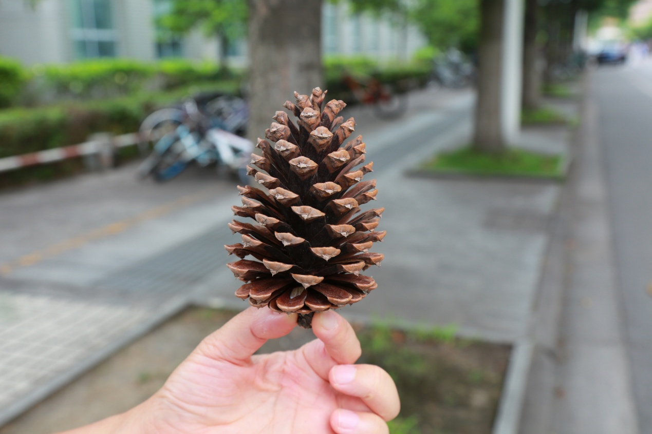 孩子们天生对陌生环境充满好奇,一草一木,甚至小小的昆虫,对他们来说其乐无穷。嘉定校区超高的绿化率正好满足孩子们寻宝的愿望,一只迷你蚱蜢在他们眼里都是新奇的物种,校园中散落的松果,都成了孩子们抢手的宝贝。