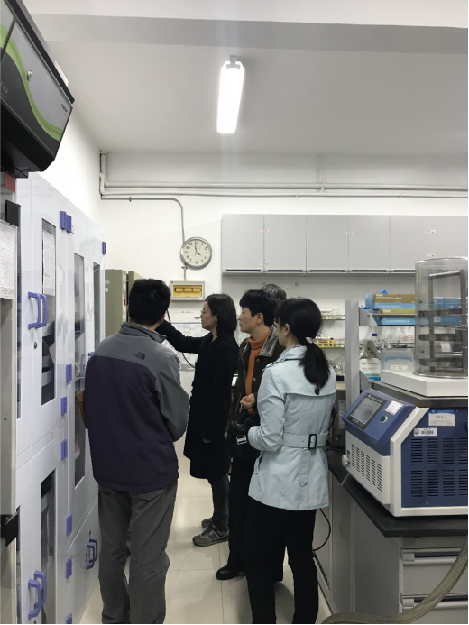 会议结束后,一部分安全员随陆丽君老师到黄翔峰教授课题组实验室进行了实地参观。实验室干净整洁的面貌令老师们纷纷赞叹不已,陆老师表示实验室的管理要依靠老师和同学们共同完成,“我们是根据学院下发的安全隐患自查表来对照检查并整改的”。