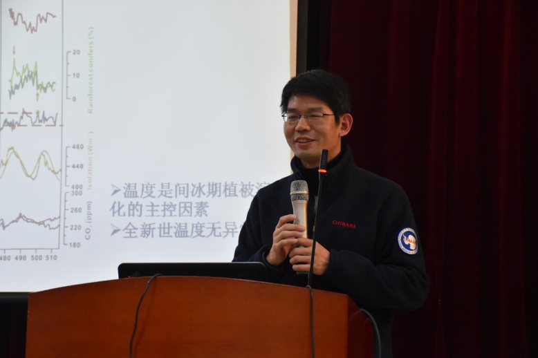 海洋学院博士程仲景报告通过对间冰期内部变化、植物变化与气候波动及炭屑记录的关系探究早期人类活动对地球系统的影响。得出结论:温度是影响间冰期中国南方植被演化主要因素,由于早期人类活动干扰,全新世植被已经完全脱离自然演化趋势。党皓文老师点评这是一个有趣且十分重要的研究,并肯定了数据信息获取的不易。