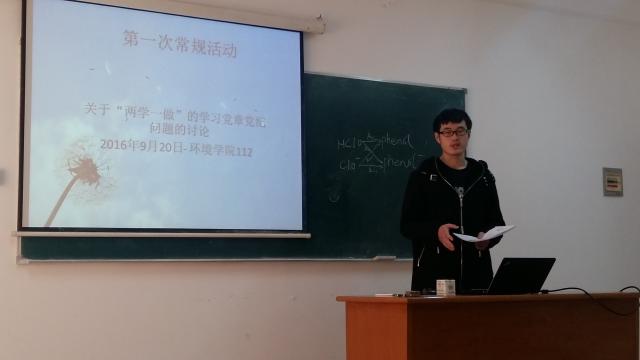 上学期各党章学习小组在形式上也有了诸多创新,使得理论学习更加生动。15级工组组长王泽茜在一次常规活动中选择观看《习近平用典》系列短片(两学一做学习教育网),将习近平书记的经典讲话与实际情境联系起来,更加深刻地体会系列讲话的精神,同是也震撼于汉语文化的博大精深;而在特色活动中通过制作《祖国不会忘记我》主题视频,经过一学期的理论学习,组员们将对生活和社会的思考融入剧本,将爱国之情内化于心、外化于行,完成《祖国不会忘记》的拍摄,作为110周年校庆和65周年院庆的献礼。15级工科组组长王子元创新开展了新闻播报与短评活动,让组员不限主题限时进行新闻概括叙述与点评,使活动形式更加活泼丰富,确保了全员的参与度。限时发言锻炼了组员们对事件的概括能力,逻辑思维能力和语言表达能力。活动效果较好,组员收获颇丰。