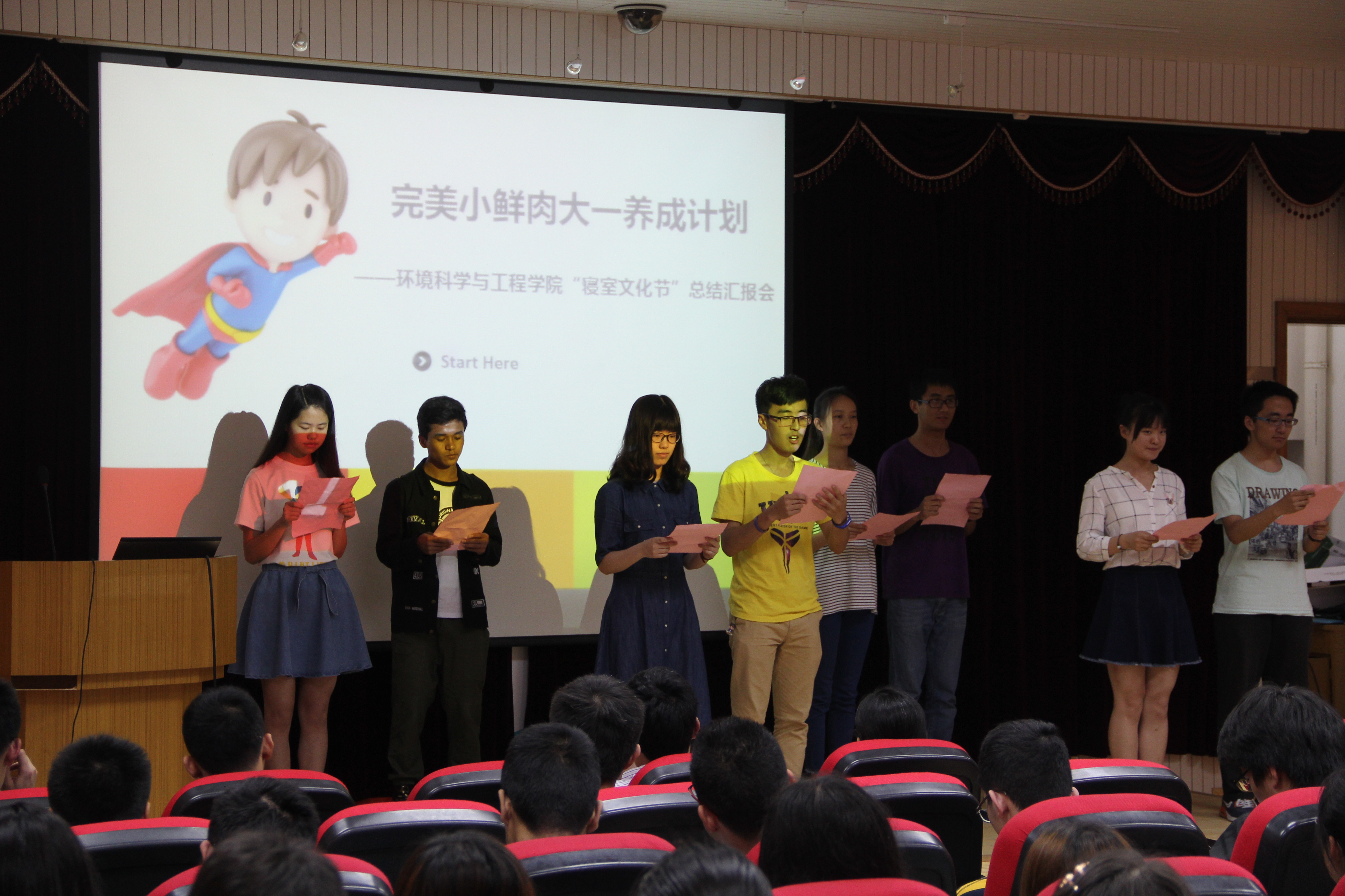 钱昕老师为在“寝室文化节”中表现突出的“最佳小鲜肉”颁奖并讲话,她说,通过参加这次的汇报总结会,可以看出同学们都很投入地参与其中。总结会并不是 “寝室文化节”的结束,这个活动更看重学生们从一开始就打好基础,养好习惯,走好每一步。祝贺大一的“鲜肉们”完成一年的学习生活,也希望所有经历过的人 和事可以成为大家前行的力量,积淀成bat365官网登录入口、环境人的文化。