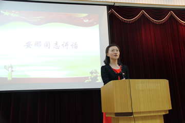 安娜同志发表讲话。她首先向获奖个人与集体表示祝贺,并向全院党员师生致以节日问候。安书记指出,本次会议既是一次纪念会、总结会、表彰会,更是一次动员会、布署会和工作推进会。她回顾了我们党95年走过的光辉历程以及学院60多年在党的带领下取得的飞速发展,并对全院师生党员提出三点希望,一是要不断加强政治自信,二是要在各自的岗位上发挥先锋模范作用,三是要进一步深入开展“两学一做”学习教育,争做合格共产党员。