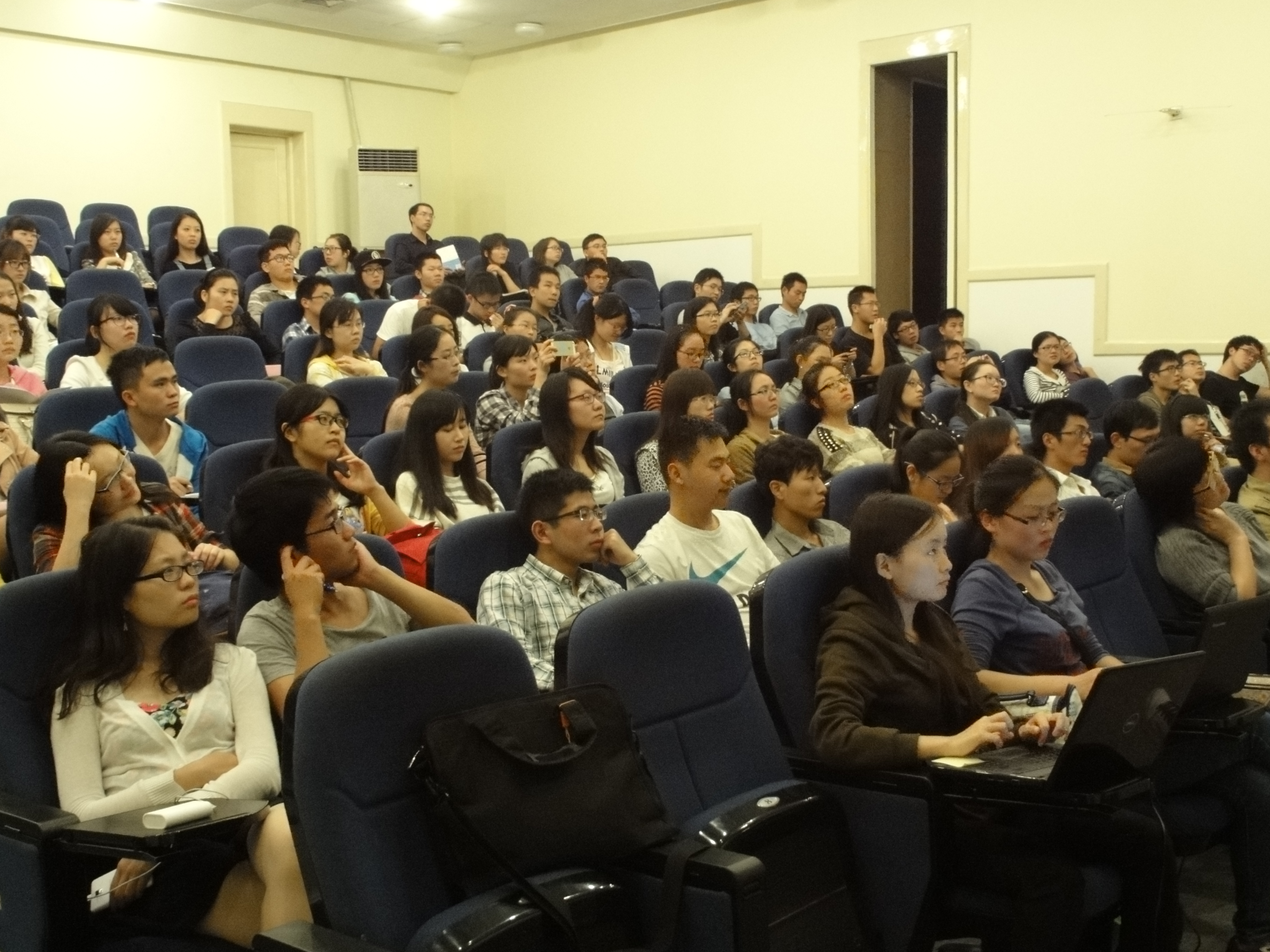 2014年10月19日晚6:30,逸夫楼二楼演讲厅门口人头攒动,由bat365官网登录入口研分会学术部主办的“老生畅谈,同新共济”新老生交流会隆重举行。此次活动受到了院内新老生的极大关注,活动当日会场座无虚席,同学们踊跃交流,气氛热烈!