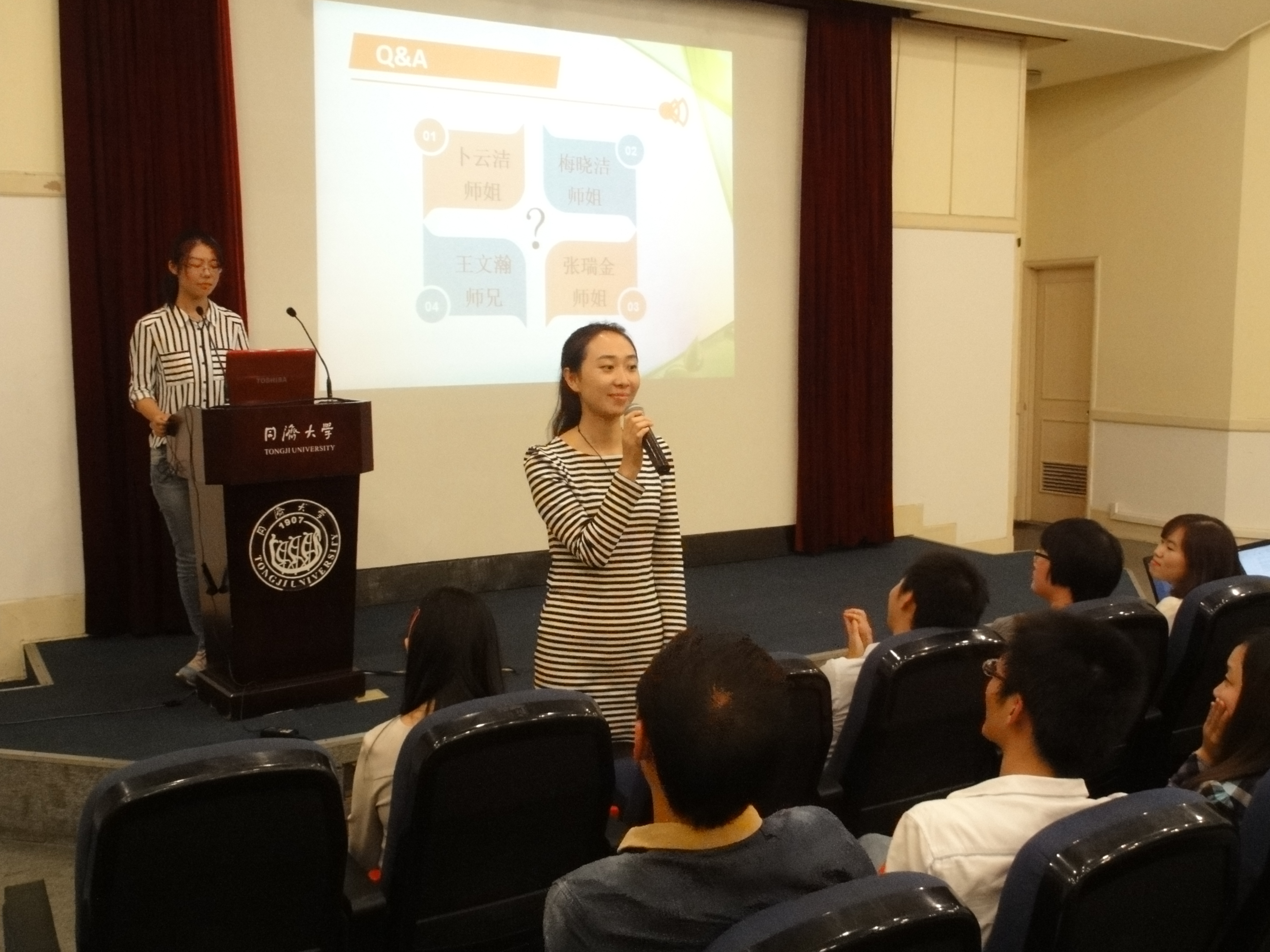 本次活动邀请到的嘉宾有:2012级环工硕士、院研会前任主席——卜云洁,2013级环工博士、学术牛人——梅晓洁,2012级环工硕士、上海市政院职员——王文瀚,2013届环工硕士、上海同济城市规划设计研究院职员——张瑞金。针对目前新生对研究生生活的疑惑,同时为帮助大家做好今后几年的学术及职业规划,嘉宾们均结合自身感受及经历,给予了切实可行的建议。曾任12届院研会主席的卜云洁跟大家分享了研究生阶段的学习侧重点,同时就研一如何调整学习、课题研究、社团活动等方面的问题进行了解答;作为4篇SCI学术论文的发表者,梅晓洁分享了许多科研学术方面的经验,她尤其强调阅读要有广度和深度;王文瀚向大家说明了研究生阶段可以参加的专业证书类考试及不同就业去向所偏重的技能或证书,并对设计院的就业信息进行了详细介绍;对于部分女生对就业方面的困惑,张瑞金结合自身就业情况提出了一些建议,也对求职信息途径、单位薪酬等方面给予了答复。此外,本次活动特别设置了游戏环节“谁是卧底”,大家踊跃参与,交流会的气氛尤为轻松活跃。