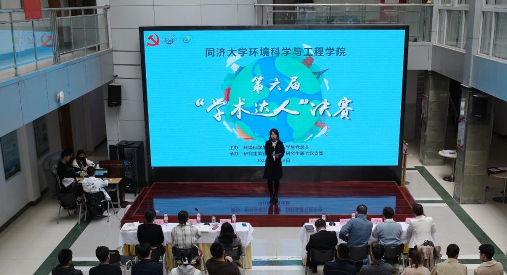为加强校风学风建设,弘扬“爱国、创新、求实、奉献、协同、育人”的科学家精神,11月18日下午,第六届“学术达人”决赛评选在明净楼一楼大厅如期举办。本次评选活动由我院学生党总支主办,研究生第五党支部和研究生第七党支部承办。bat365官网登录入口院长戴晓虎、院党委副书记陆丽君、bat365官网登录入口党委学研工部蔡艳丽、市政工程系教工支部书记邢美燕、环境工程系主任李咏梅、环境科学系主任、支部书记邱宇平、环境管理与规划研究所所长王颖出席本次活动。