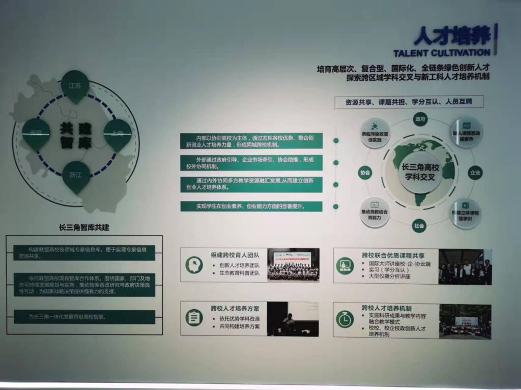 在人才培养方面,可持续发展研究院结合新工科人才培养理念,以培育高层次、复合型、国际化、全链条绿色创新人才为目标,努力探索跨区域、学科交叉的人才培养机制。在内部,以协同高校为主体,通过发挥各校优势、整合创新创业人才培养力量,形成同城跨校机制。在外部,通过政府引导、市场牵引、协会助推,形成校外合作机制。通过内外协同、多方融汇,建立起创新创业人才培养体系,着力提升学生创新素养与创业能力。