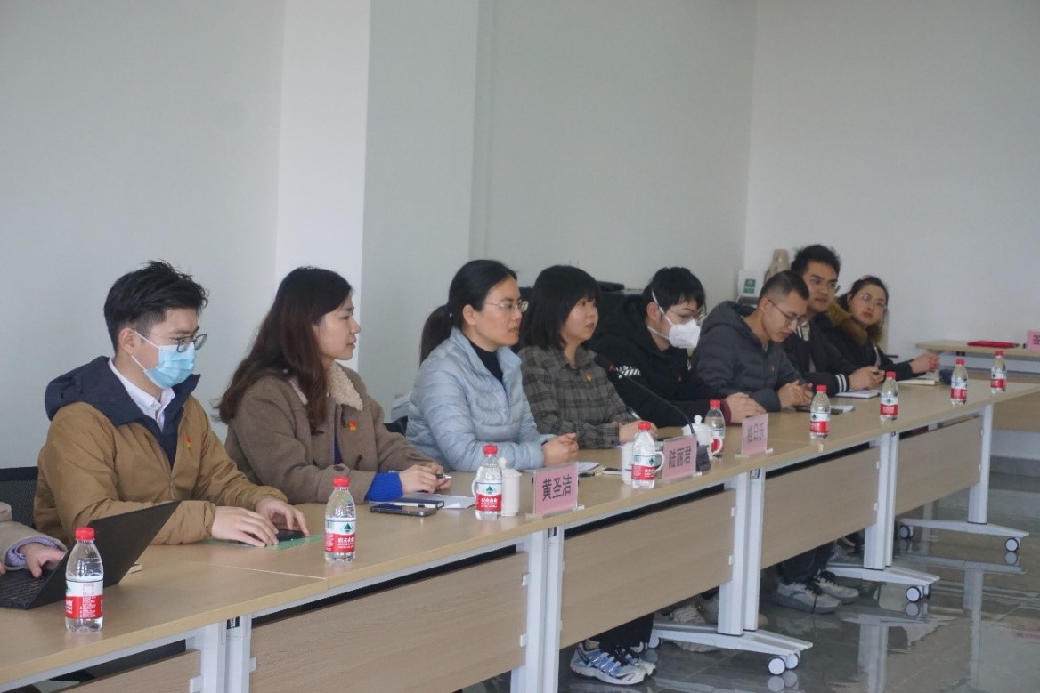 参观结束后,双方来到生物能源中心会议室座谈,双方就如何更好的培养环境学科人才展开交流,谈宇青主持座谈会议。bat365官网登录入口研究生第二十一党支部副书记郝泽伟作《赶考路上,环境人共绘美丽中国新画卷》党课报告,他表示作为一名环境学子深感荣幸,也深知自身所肩负的时代使命,勉励大家在实践中不断锤炼本领,将自身专业知识与国家发展相结合,做出我们这一代人的历史贡献。随后,老港处置公司生物能源再利用中心团员青年、黑水虻技术员周劢做黑水虻养殖示范工程的技术介绍。双方青年就研究难点、技术创新展开探讨。