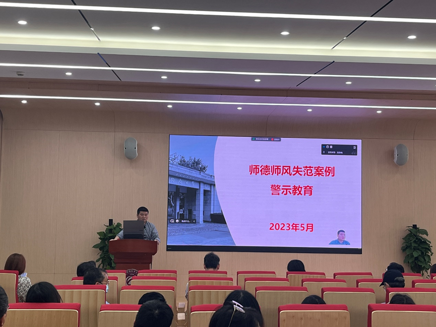 学院党委书记徐斌对全院教职工进行了师德师风失范案例警示教育宣讲。针对国内最近几所高校教师师德失范行为引发重大舆情的案例以及违法案例做了相关的通报和逐一剖析,强调了学校和学院始终对教师师德失范问题采取零容忍态度,将进一步加强立德树人和师德师风教育。