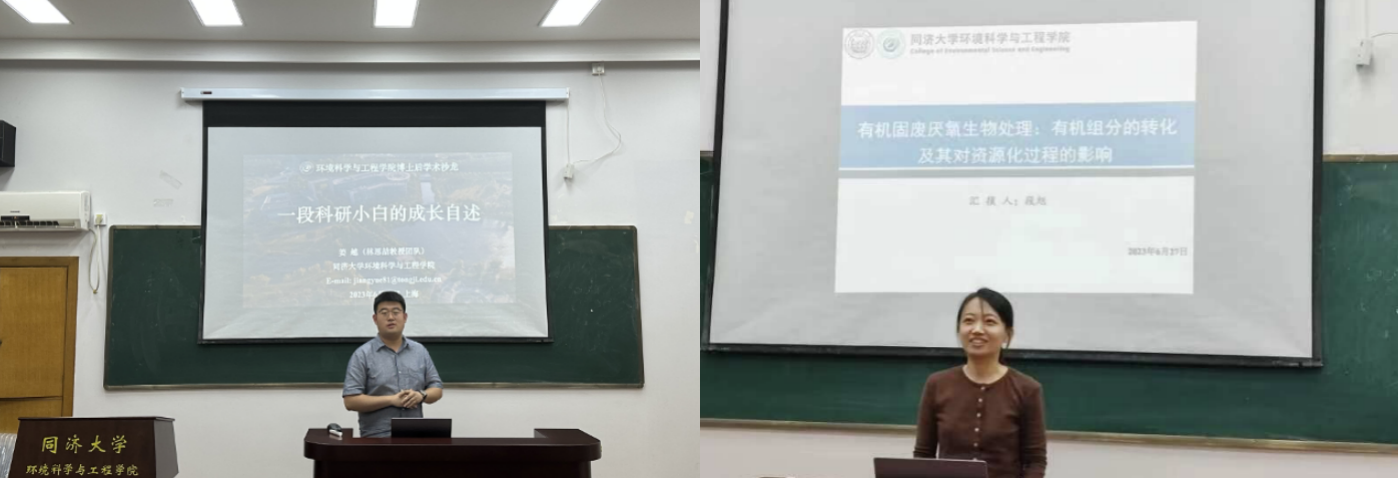 随后,博士后姜越、段旭、华煜分别以《一段科研小白的成长自述》、《污泥厌氧回收碳源同步降解新兴污染物》、《城乡难水解有机固废高值资源转化原理与技术研究》为题进行了分享和交流。他们的分享内容各有侧重,对在站博士后的科研工作起到了很好的启发和参考作用。在场博士后和研究生就自己感兴趣的话题进行了讨论。
