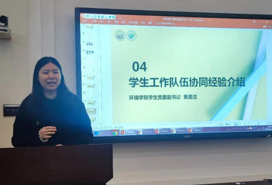 学生党委副书记黄圣洁介绍了在关注学生心理健康中做好学生工作队伍协同的经验分享,围绕党团班联动、各方齐抓共管、协作活动牵引等方面介绍了如何在关注学生心理健康工作中汇聚各支学生工作队伍力量,实现“1+1>2”的效果。