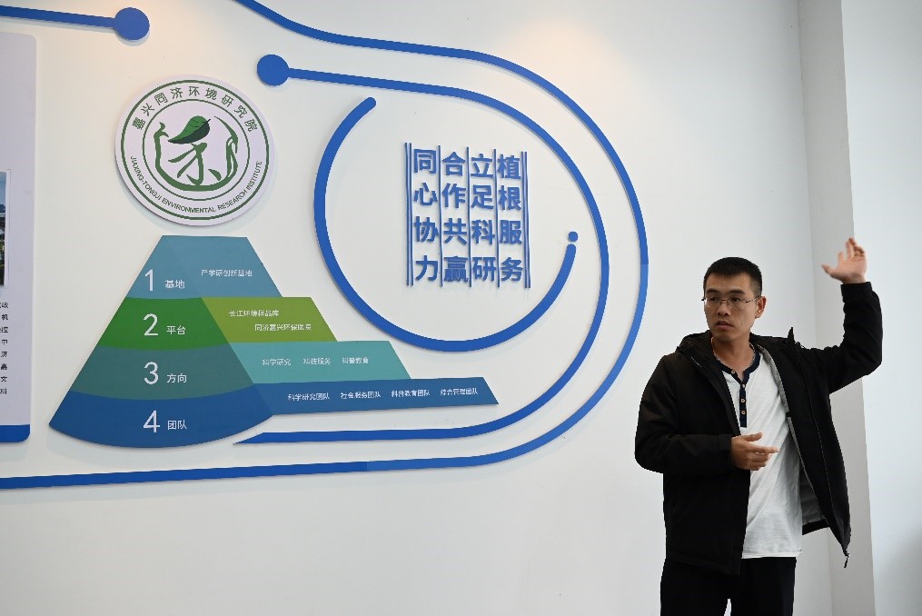 南湖之行结束后,同学们乘车前往了位于嘉兴市可持续发展公园内的嘉兴同济环境研究院。在研究院的朱宁正老师带领下,同学们进入研究院内部进行了参观。研究院依托bat365官网登录入口在环境领域的强大研究平台和资源,致力于环境保护领域的科研任务、人才培养、成果转化、国际合作以及科普宣传等多项工作。