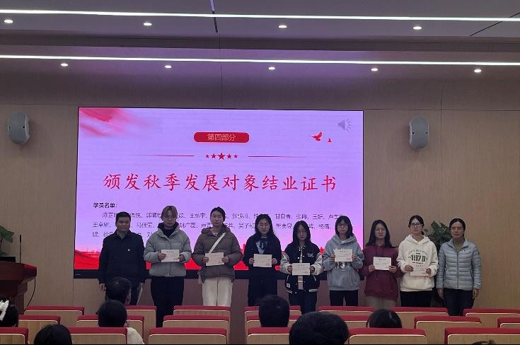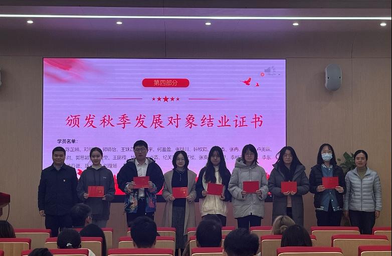 随后,徐斌老师、陆丽君老师、黄清辉老师和黄圣洁老师分别为本次顺利结业的发展对象和积极分子颁发了结业证书。