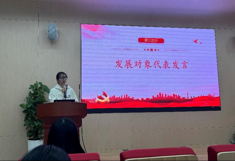 然后,秋季发展对象代表研究生第九党支部的郭思颖同志结合自己在此次培训的学习和自己的支教经历分享了自己的心得体会。