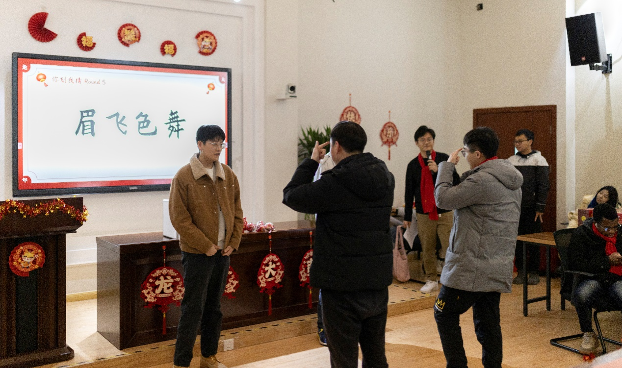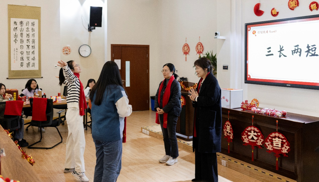 茶话会在轻松愉快的气氛中进行,《新春歌曲对对碰》、《你画我猜》等游戏环节,师生分组参赛,考验默契,展示表演力和想象力。同时,活动设置了抽奖环节,济济一堂,年味浓浓。