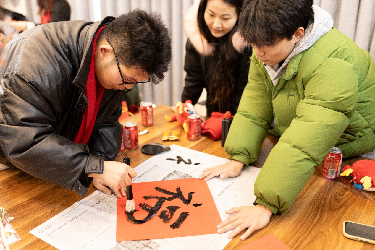 挥春迎瑞气,福到千万家。活动最后,大家一起合影留念,记录这充满温馨与快乐、洋溢青春与激情的美好瞬间。愿同学们在新的一年龙行龘龘,前程朤朤!