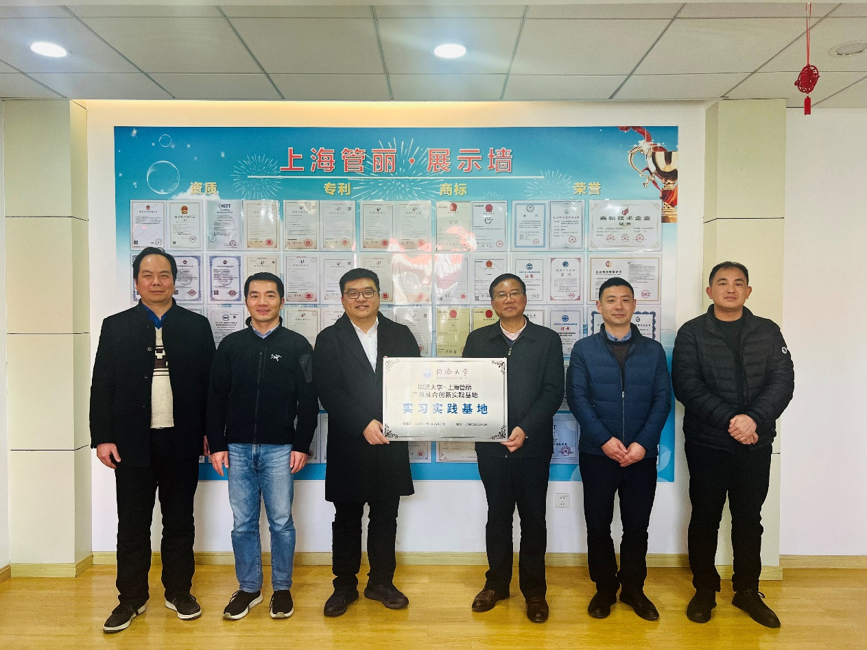 上海管丽建设工程有限公司副总经理梁修军、总工杨后军,我院市政工程系副主任黎雷,教师李树平共同参加了揭牌仪式和会议。