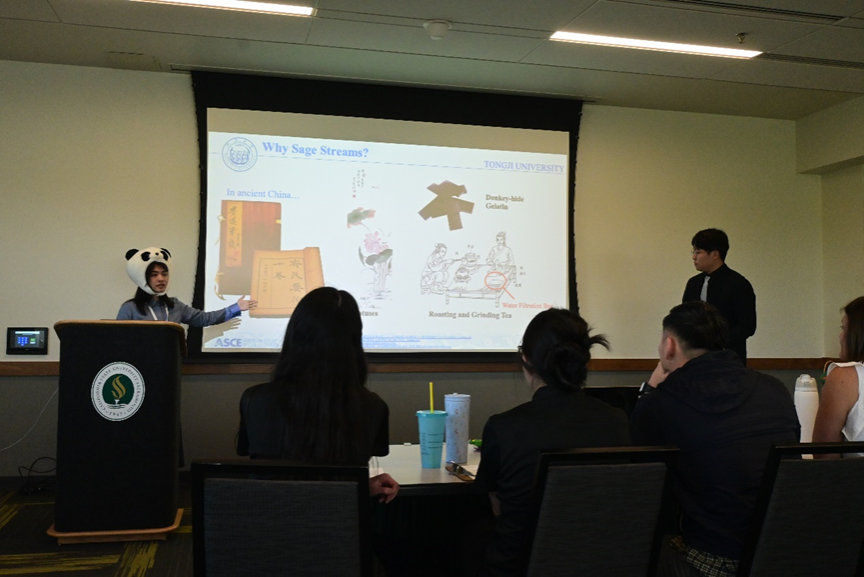 本届ASCE中太平洋赛区学生研讨赛吸引了包括加州大学伯克利分校、戴维斯分校、萨克拉门托分校、圣荷赛分校、齐科分校、bat365官网登录入口、浙江大学、东南大学等11所中美一流高校的参与。在如此激烈的竞争中,bat365官网登录入口水处理队能够取得如此优异的成绩,实属不易。这支水处理队由bat365官网登录入口的曹雨萱、陈家铭、沈为鑫三位环境工程专业学生和土木工程学院的欧阳雯勃同学组成,陆志波教授和史俊副研究员担任指导教师。他们在比赛中充分展示了同济学子扎实的专业知识、团队协作能力和创新精神。经过设计报告书(Design Report)、6分钟的全英文口头展示(Presentation)及4分钟评委问答(Q & A)、海报设计(Poster Design)、现场搭建(Construction)和絮凝过滤(Treatment)等环节,他们凭借出色的表现赢得了评委们的一致好评。