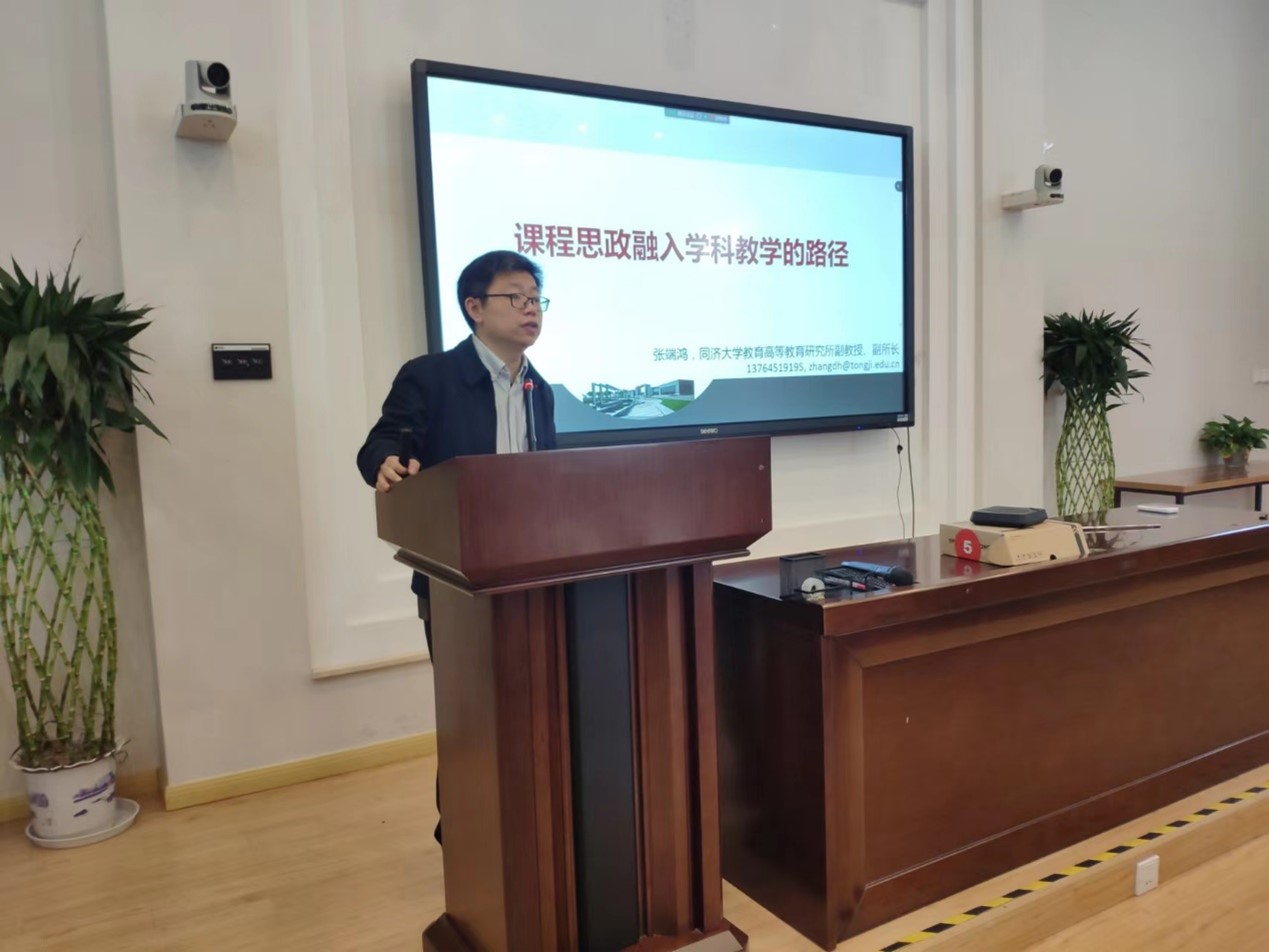 张端鸿副教授从课程思政的政策认知、价值认知、实践认知等不同角度,探讨了课程思政融入学科教学的路径。张教授首先对高校课程思政建设的政策进行了回顾,介绍了课程思政融入学科教学的重要性。同时,谈到课程思政价值认知时,张教授认为课程思政重在充分发挥课程价值教育功能,把政治认同、国家意识、文化自信、人格养成等思想政治教育导向与各类课程固有的知识、技能传授有机融合,实现显性与隐性教育的有机结合,促进学生的自由全面发展,充分发挥教育教书育人的作用。最后,张教授分享了课程思政融入学科教学的案例,强调课程思政建设应遵循教育规律,实现学科专业规律、课程建设规律、教育教学规律、学生成长规律、思政教育规律的有机统一。