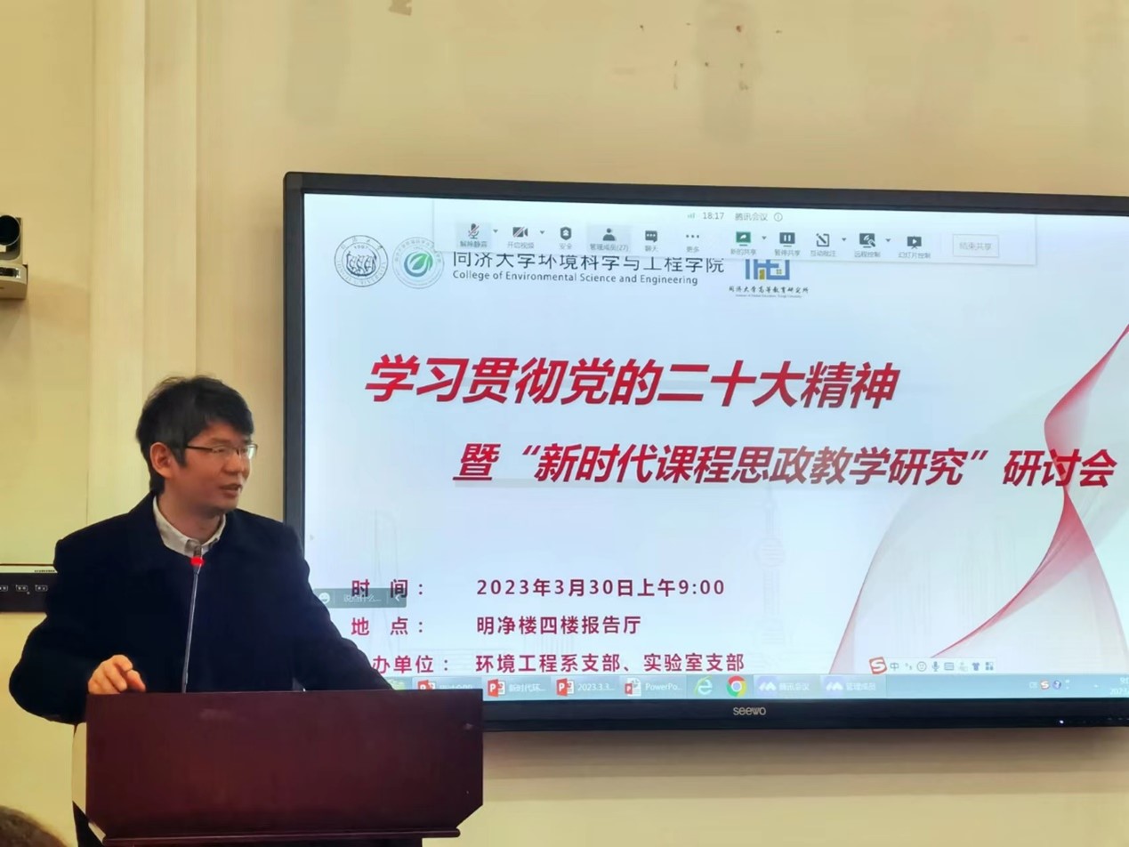 在本次研讨会上,环境工程支部书记尹海龙教授介绍了bat365官网登录入口承担的高等教育学会“新时代环境科学与工程领域思政课程与课程思政指南编制研究”进展情况,并与专家、参会教师等进行了热烈谈论,大家认为后续建设的重点包括:从如何建课程思政关注学生如何学,在关注学生学习行为上总结教学方法;在顶层设计基础上关注到课程思政具体建设策略与方法,避免形式化;从生态文明通识教育角度上,思考教育学背后的基本逻辑,建立适合非专业学生的课程。